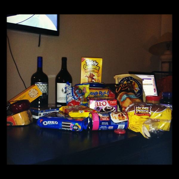 For tonight, we’re stacked with non-perishable food, delicious snacks, candy, wine and cheese, take out food, board games, magazines and movies and ready to take on the storm.